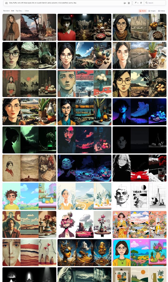 – Я выбрал несколько стилей и по моему промпту сгенерировались очень разные изображения: