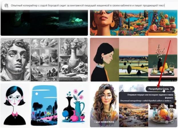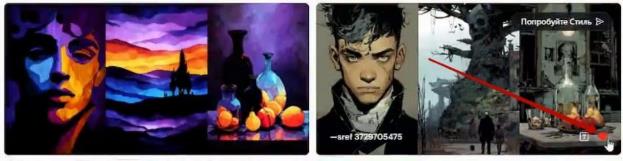 – при наличии написанного в поле выше промпта, система сразу же начнет генерации с этими стилями – все они отобразятся на второй вкладке – Создать: