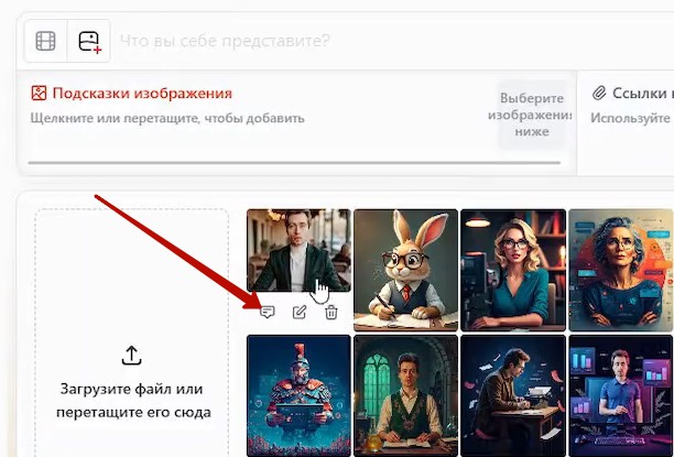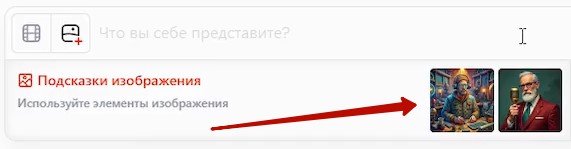 – В поле ввода промпта нажмите кнопку добавить изображение и загрузите фото с вами или другим персонажем: