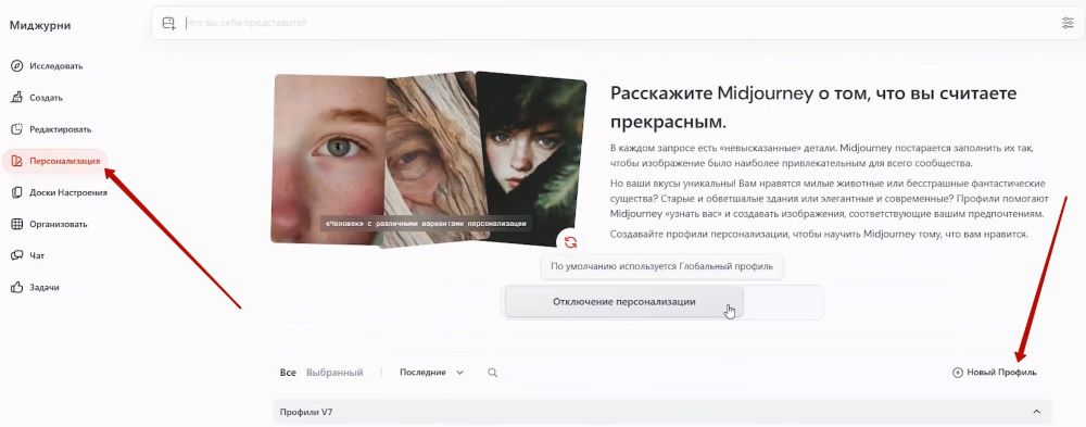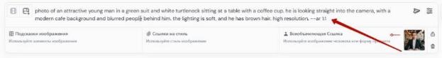 – Вставляю промпт в Миджорни, включаю персонализацию, устанавливаю все необходимые настройки и отправляю: