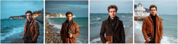 Промпт: молодой мужчина стоит на берегу моря