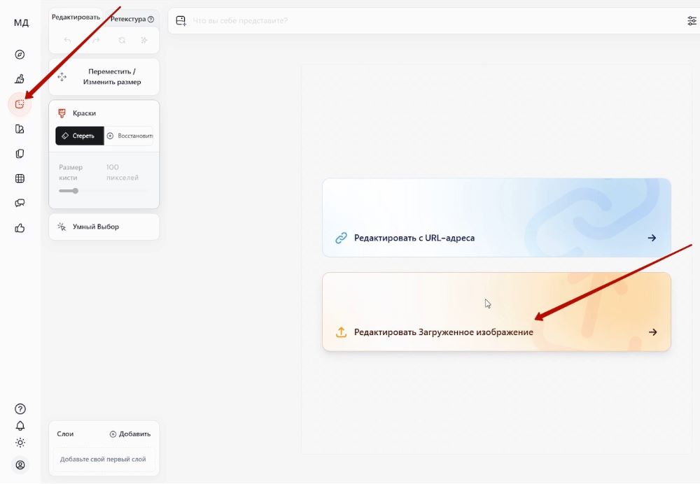 Помимо загрузки ваших фотографий, можно загружать и внешние картинки, на основании которых вы хотите сделать новые изображения.