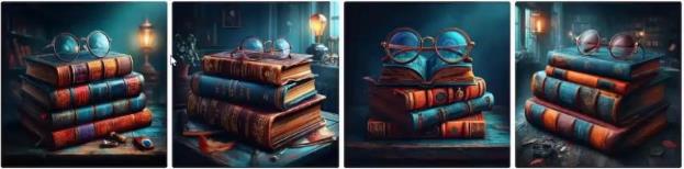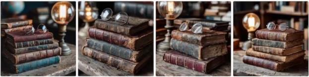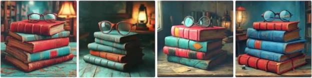 – Промпт: Стопка старых кожаных книг на деревенском деревянном столе, очки для чтения лежат сверху, винтажная библиотека, тёплый свет лампы, академическая атмосфера, стиль натюрморта