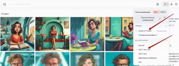 – В персонализации я выберу свой основной профиль и доску, которая создана на основе сгенерированных мной картинок:
