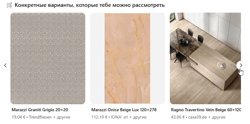 ChatGPT может помочь не только с расчетом, но и с подбором плитки. Для этого нужно включить режим Поиска в интернете: