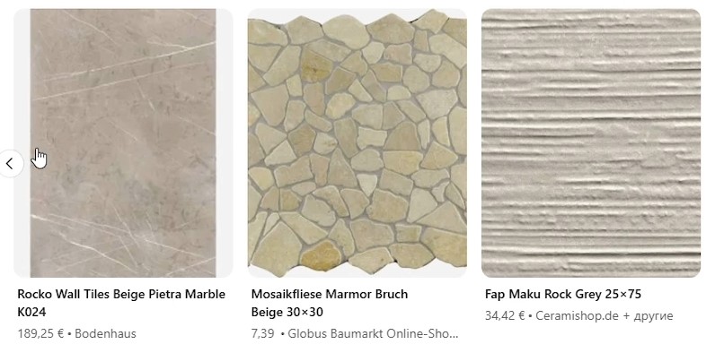 Теперь помоги мне с выбором – предложи варианты плиток, чтобы был спокойный стиль серого или бежевого цвета под гранит или мрамор