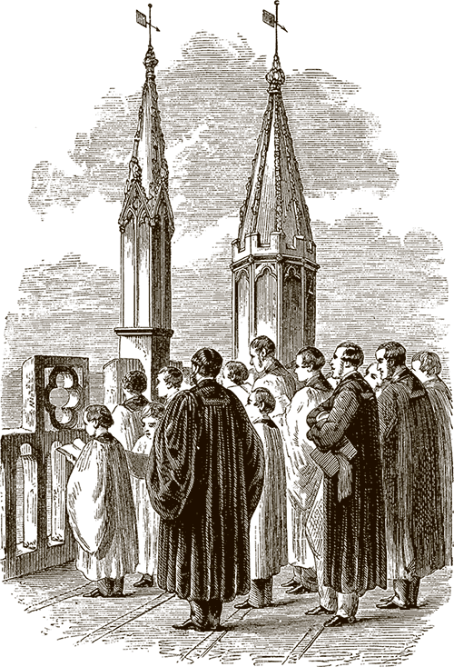 Майское утро (May Morning) Каждый год первого мая, ранним утром, на зубчатую башню Модлина поднимается хор мальчиков в белых одеждах и поет гимн, приветствуя наступление весны. Этой традиции более пятисот лет – она берет начало с пятнадцатого века, с самого основания Модлин-колледжа. На башню можно попасть только по специальному приглашению – как мы знаем, Гарриет получила такое приглашение от помощника проктора. Художник-прерафаэлит Холман Хант прославил эту традицию за пределами Оксфорда, написав одноименную картину.