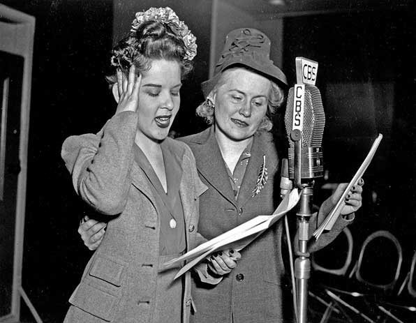 Ил. 1. Нина Клоуден (слева) с Вирджинией Пейн в роли Ма Перкинс, чтение для «Ма Перкинс», радио Си-би-эс, 1940-е годы. (Любезно предоставлено Photofest)
