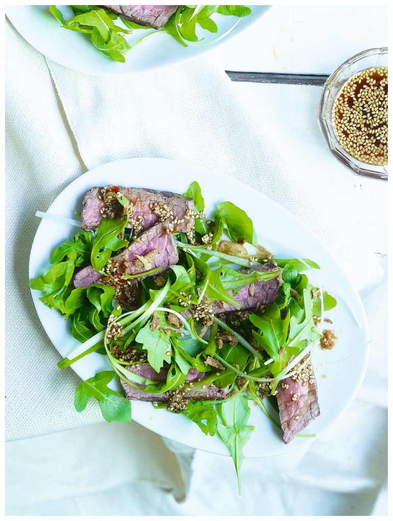 Салат из говядины с кунжутом и руколой