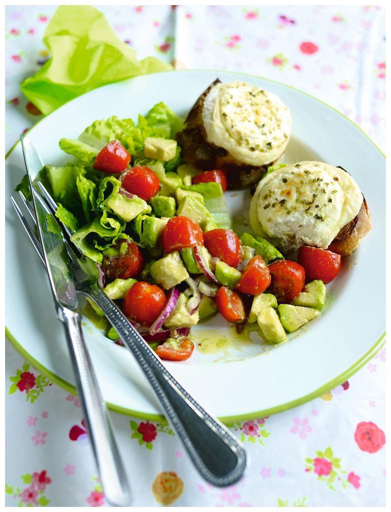 Салат с запеченным козьим сыром и авокадо