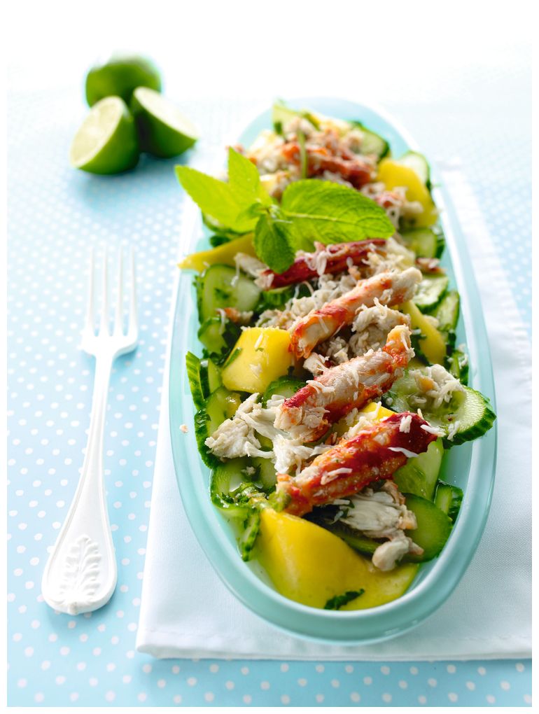 Салат с огурцом, манго и крабом