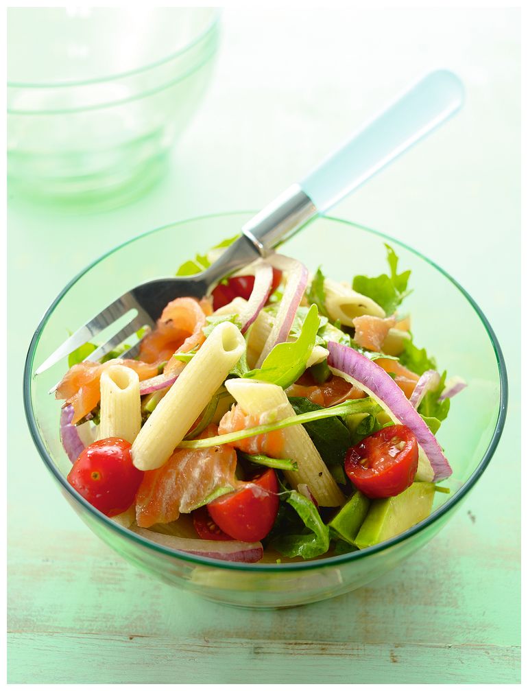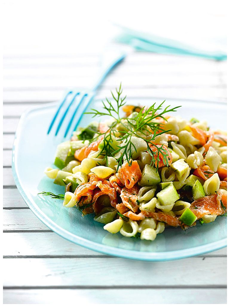 Салат с макаронами и копченым лососем
