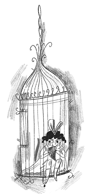 Сейчас, шагая по тёмным коридорам и запущенным комнатам дома, она направлялась к Дедуле. Проходя мимо обветшавшего бального зала, она услышала, как хнычет во сне её сестрёнка. Колыбелькой Антипатии-Розе служила большая железная птичья клетка, подвешенная к потолку на длинной цепи. Дно клетки было щедро застелено стёгаными одеялками и перьевыми подушками, расшитыми мордами гаргулий. Малиса вынула из кармана купленное в зоомагазине вяленое свиное ухо и сунула его между прутьев прямо в горячие липкие ручки Антипатии-Розы. Малышка тут же перестала хныкать и, не просыпаясь, уселась на подушках, потянув свиное ухо в рот.