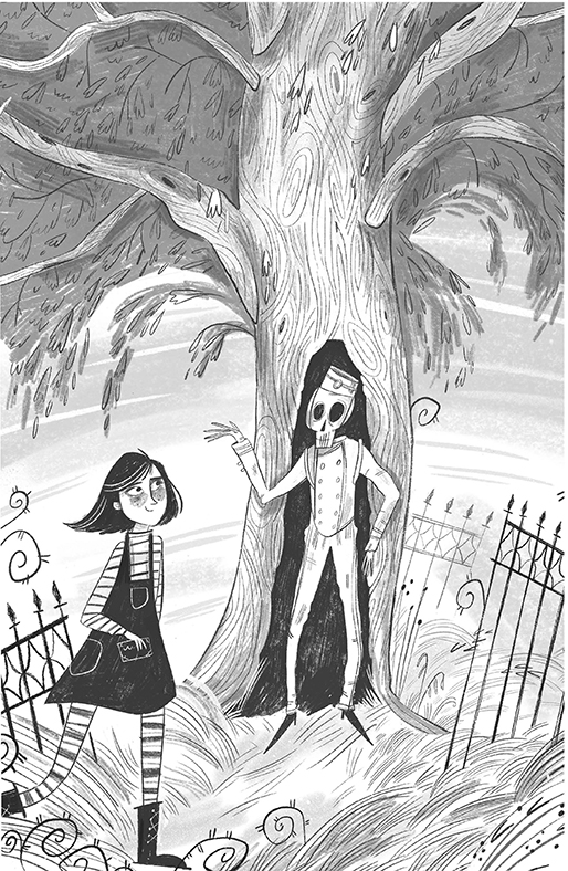 Ствол старого дуба вдруг затрясся. Извилистый корень в его основании зашевелился, то поднимаясь, то опускаясь, как щупальце играющего на пианино осьминога. Казалось, дерево решило вырваться из земли и перебраться на другое место. Не успела Малиса представить, на что это будет похоже, как вдруг с громким «ПИНГ!» часть дубовой коры скользнула в сторону, открыв тёмный проём, из которого приветливо скалился скелет в униформе мальчишки-посыльного.