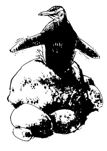 Дальше наш путь лежал туда, где, по словам Стена, находилось одно из гнездовий желтоглазых пингвинов. Эти пингвины – одни из самых красивых представителей отряда, и некогда их было довольно много в районах побережья с благоприятными природными условиями, но всюду, где появлялся человек, они исчезали. Желтоглазые пингвины предпочитают гнездиться вдали от воды, в лесу или в кустах; подле бревна или камня они сооружают себе гнездо из прутиков и жесткой травы. Но люди сводили лес и кустарник; расчищая пастбища для своих драгоценных овец, они уничтожали естественную среду обитания птиц, и число пингвинов пошло на убыль. Если к этому добавить, что фермеры (и не только фермеры) грабили гнезда, разбивали яйца и истребляли беззащитных родителей, – и перед вами в миниатюре то же, что происходит по всему свету: гибнут сотни безобидных видов – птицы, млекопитающие, рептилии.