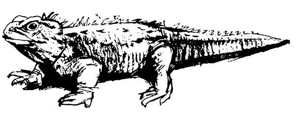 Для человека непосвященного туатара – попросту крупная, внушительного вида ящерица; на самом же деле – и этим объясняется, почему натуралисты вроде меня не могут равнодушно смотреть на нее, – туатара вовсе не ящерица. Своим строением она настолько отличается от ящериц, что, когда туатару открыли, для нее учредили особый подкласс Rhynchocephalia, что означает «клювоголовые». А вскоре выяснилось к тому же, что туатара – настоящее, живое доисторическое чудовище, последний представитель некогда широко распространенной группы, обитавшей в Азии, Африке, Северной Америке и даже Европе. Большинство найденных скелетов относится к триасовому периоду, им около двухсот миллионов лет, и по ним можно судить о необыкновенном сходстве клювоголовых той поры и нынешних туатар. Столько лет оставаться практически неизменным – назовите мне другого такого консерватора! Многих поражает еще и то, что у этого красивого животного есть «третий глаз», помещающийся на темени между двумя настоящими глазами, но как раз эта особенность вовсе не так примечательна, чтобы о ней стоило столько говорить, ведь теменной глаз можно найти у многих ящериц, да и у других животных тоже.