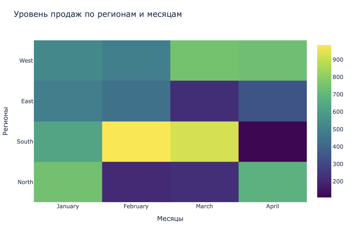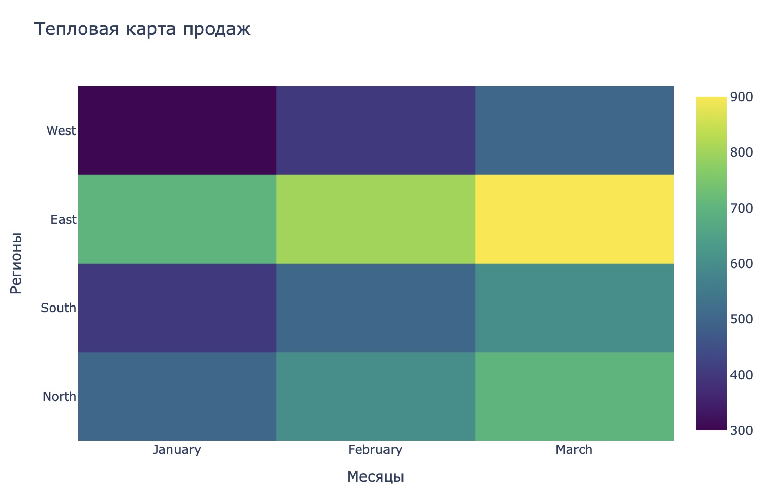 Задача 4: Построение тепловой карты продаж по регионам и месяцам
