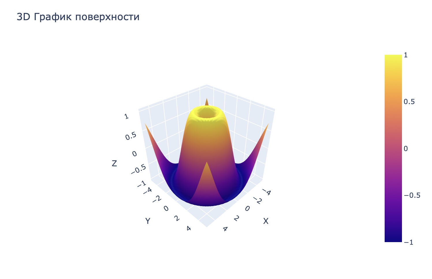 Задача 5: Построение 3D-графика поверхности функции