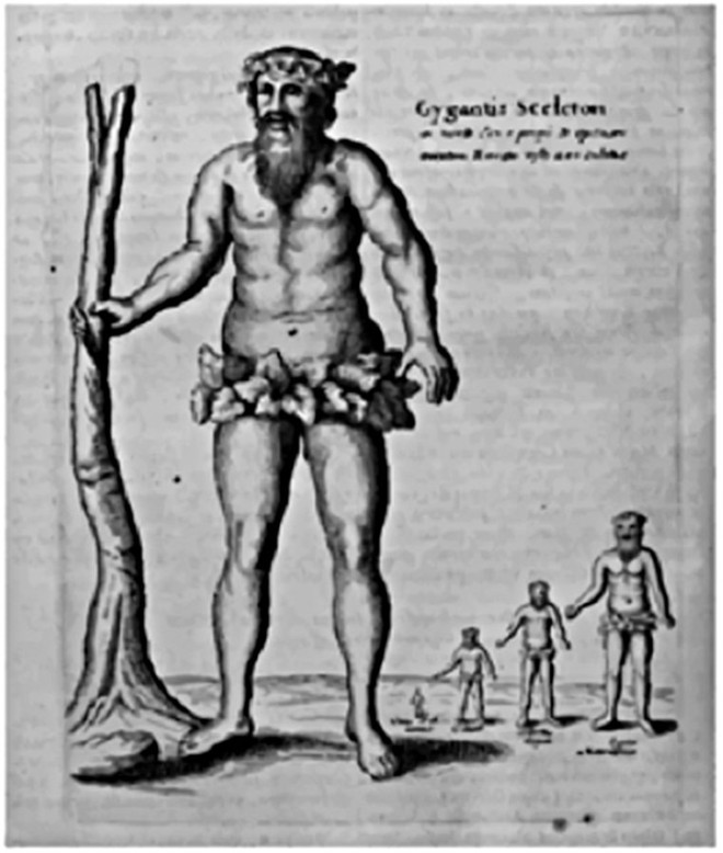 Перевернув страницу, священник показал рисунок, на котором Кирхер пытался изобразить, как могли выглядеть эти мифические великаны по сравнению с обыкновенными людьми.