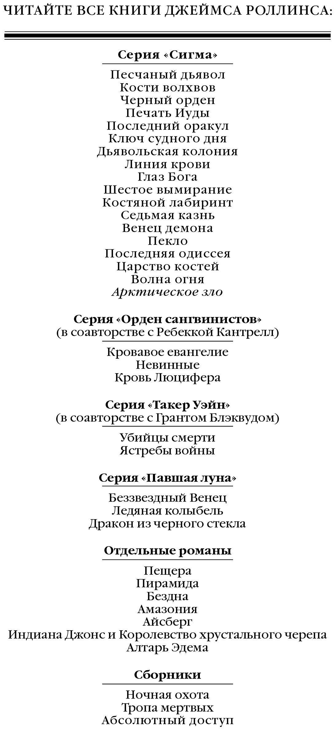 Путь от начала книги до ее конца всегда долгий, но, к счастью, мне не приходится преодолевать его в одиночку. Первым делом позвольте поблагодарить друзей-попутчиков, предлагавших мудрый совет, замечательную дружбу и проницательный взгляд на каждой странице этого повествования: Криса Кроу, Ли Гаррета, Мэтта Бишопа, Мэтта Орра, Джуди Прей, Каролину Уильямс, Сэди Давенпорт, Денни Грейсона, Ванессу Бедфорд, Лизу Голдкуль и Рояла Дзиака. И особая благодарность Стиву Прею за ценные замечания и составление карт, приведенных в книге. Также хочу выделить Дэвида Силвиана за усердный труд в цифровой сфере, помогающий мне засиять еще ярче. И еще Черей Маккартер, поделившейся со мной множеством захватывающих и любопытных теорий, некоторые из которых можно найти на этих страницах. Разумеется, ничего этого не было бы без потрясающей команды профессионалов издательского дела, с которыми никто не сравнится. Спасибо всем в издательстве «Уильям Морроу» за то, что всегда поддерживали меня, в первую очередь Лайте Стелик, Кейтлин Гарри, Джошу Марвеллу, Ричарду Акуану, Линдси Кеннеди, Беатрис Джейсон и Кейтлин Гэринг. И наконец, особая благодарность тем, кто играет неоценимую роль на всех этапах выпуска книги: моему замечательному редактору Дженнифер Брель и ее добросовестному коллеге Нейт Ланман; а также моим литературным агентам Рассу Галену и Дэнни Барору (и его дочери Хизер Барор). И, как всегда, я должен подчеркнуть, что все ошибки в фактах и деталях этой книги, которых, хочется надеяться, будет не слишком много, всецело лежат на моих плечах.