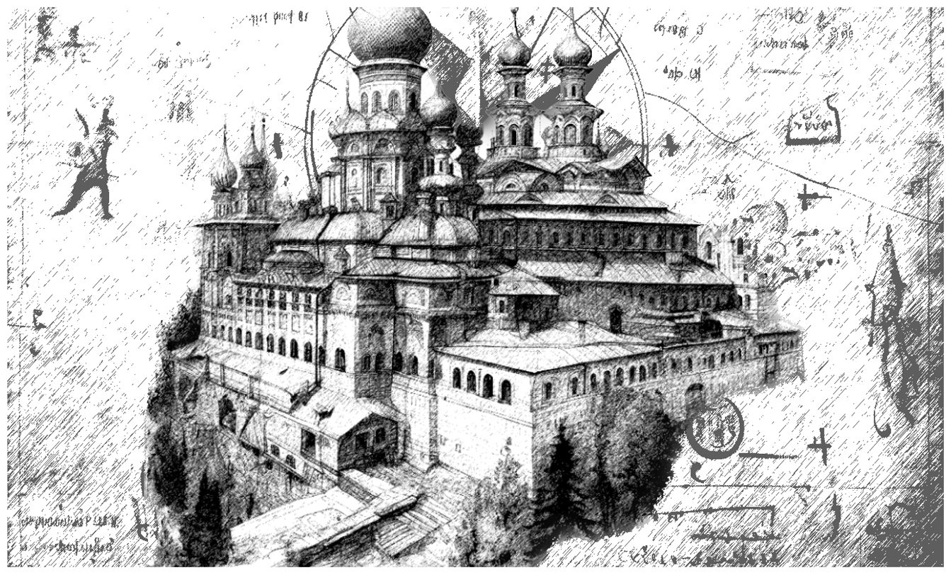 – На этом рисунке, если не ошибаюсь, изображен один из первых вариантов Троице-Сергиевой лавры в Сергиевом Посаде, это город в семидесяти километрах от Москвы.