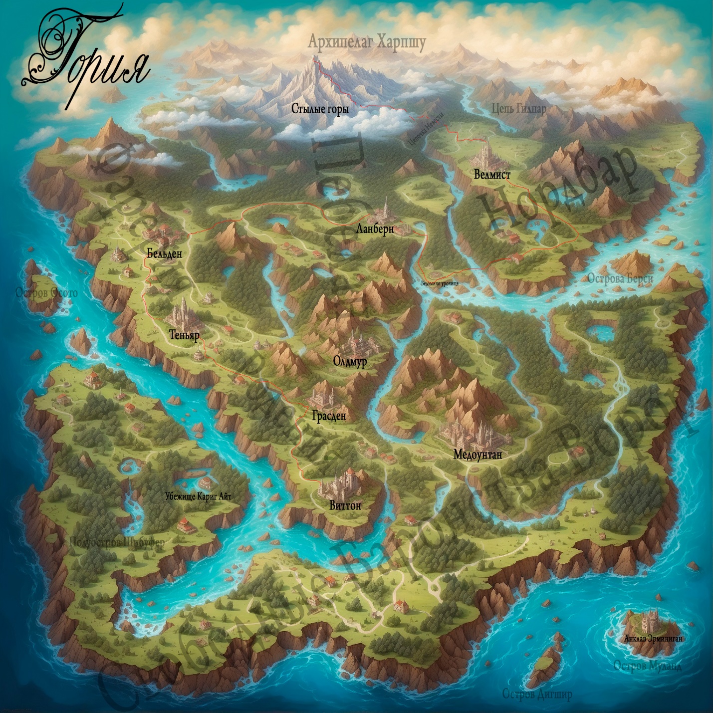 – Ну если прям о мире, то мы зовём его Гория, в него входят три больших материка и несколько островов.