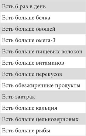 Таблица 11.1. Обычные рекомендации для желающих похудеть