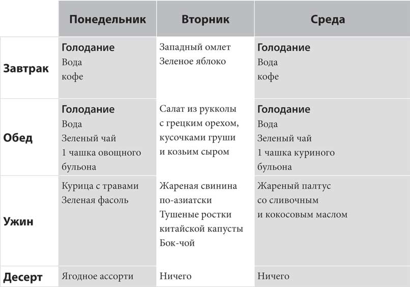 Приложение А. Меню на семь дней (с учетом голодания)