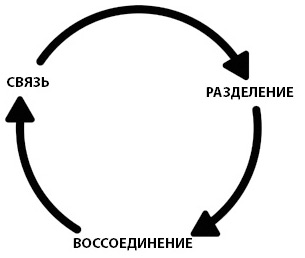 Выход на нулевой уровень – это движение от разобщения к связи. Происходит воссоединение внутреннего и внешнего, что иллюстрирует цикл разрешения конфликта (рис. 2.1).