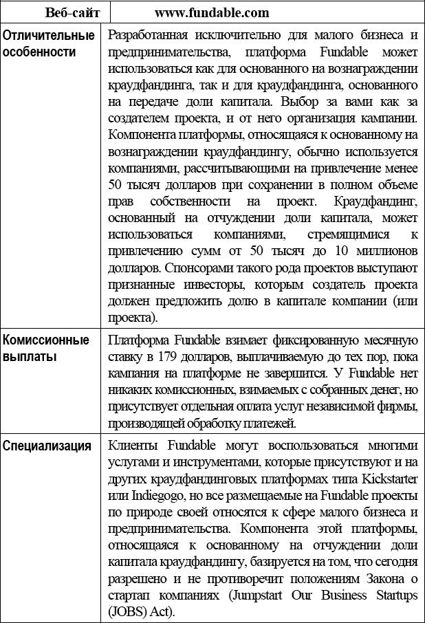 В отличие от краудфандинговых платформ, примеры которых приводились в предыдущем разделе, платформы, о которых пойдет речь сейчас, призваны обслуживать определенные типы проектов и предлагают клиентам более специализированный инструментарий для разработки и управления кампанией. Из данного раздела вы также узнаете о краудфандинговых платформах, которые можно использовать для привлечения средств, и о платформах, практикующих своеобразный подход к такого рода финансированию.