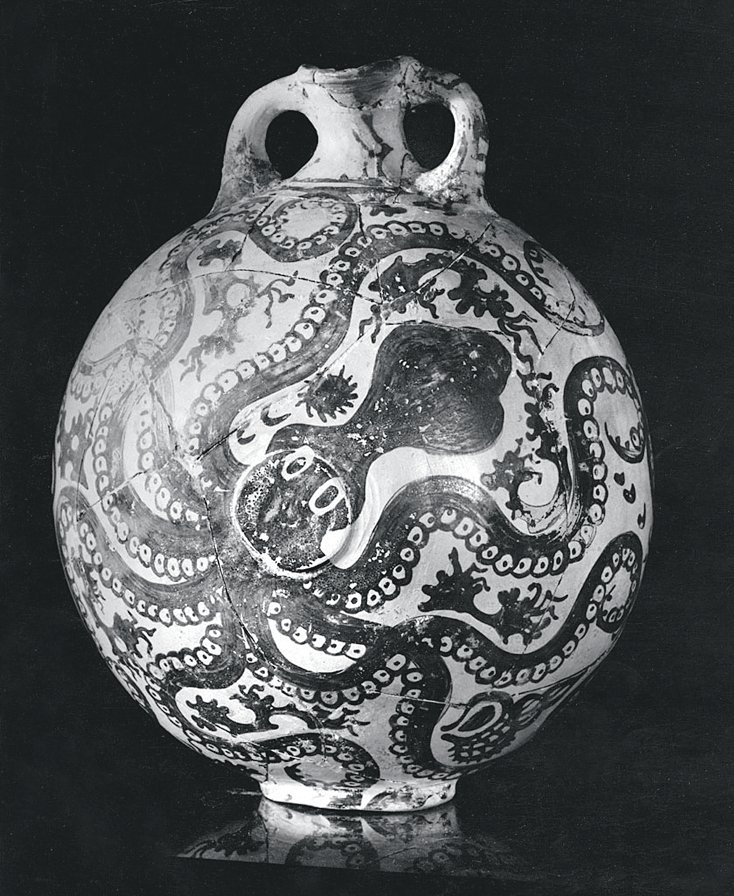 Век героев, описанных Гомером, берет истоки в средиземноморской цивилизации, которая ко времени поэта насчитывала тысячи лет. Первые очаги ее культуры возникают в середине III тысячелетия до нашей эры на крупнейшем из островов Эгейского моря – Крите. Для его обитателей – минойцев (как они будут позднее названы по имени их мифического правителя, царя Миноса) – величайшим источником вдохновения была природа. Море вокруг было полно чудес, которые они воспроизводили в своих изделиях. Рисунки на глиняных чашах они делали черными чернилами из каракатицы. Мы видим, как мифический бог моря Тритон резвится среди морских звезд, кораллов и скал. Осьминог на шарообразной глиняной вазе, раскинувшийся среди водорослей, скал и морских ежей, изображен художником, способным передать морских обитателей в декоративном ключе. В извивающихся щупальцах обитателя морских глубин уже заложены та творческая энергия и восхищение природой, которые в предстоящее тысячелетие охватят всё Средиземноморье, породив скульптурные и живописные сценки столь любимых минойцами «игр с быками» – одни из первых изображений тела в пространстве; или бегущие по стенам дворцов спиральные узоры. Стены своих дворцов минойцы украшали изображениями юношей с павлиньими перьями на головах и девушек, танцующих с обнаженной грудью в окружении лилий и орхидей. Эти образы создают впечатление счастливой, полной наслаждений жизни островного народа [1].