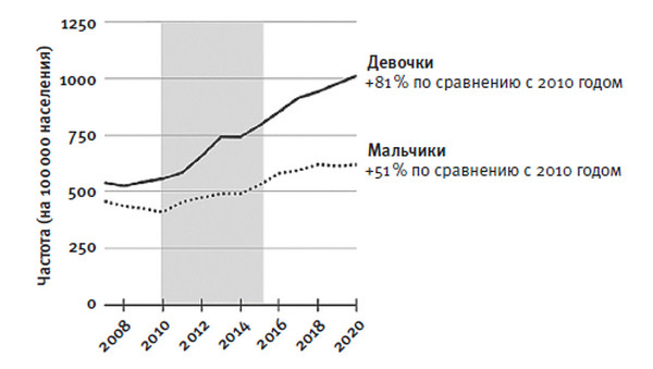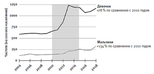 Как и в США и Канаде, в начале 2010-х годов с британскими детьми произошло нечто, из-за чего они значительно чаще стали причинять себе вред[88]88