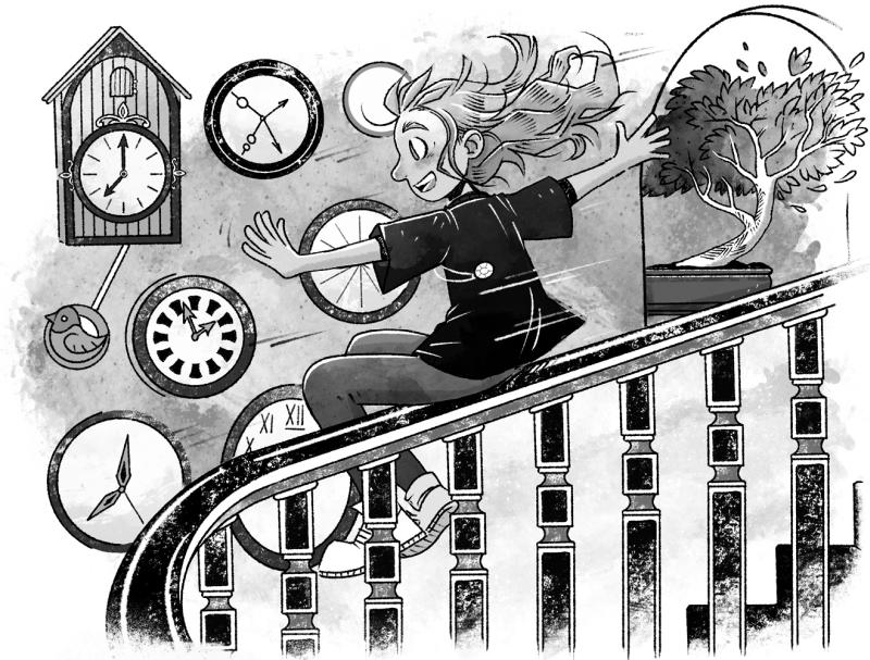 Петула тихонько взвизгнула, словно подтверждая, что вся проблема именно в этом. И Молли, решив, что маме действительно не хватает хорошего завтрака, вышла из гостиной. Они с Петулой прошли по крытой галерее, где в нишах вдоль стен стояли на столиках горшки с миниатюрными японскими деревцами бонсай, которым было по четыреста лет. Потом поднялись по широкой каменной лестнице Времени, названной так, потому что на стенах по обе стороны висело множество громко тикающих часов.