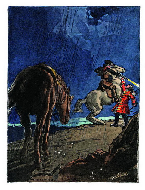 Кое-как я спрятал волосы в чехол, натянул белые чулки, кружевную рубашку, еще две такие же поверх нее, рассовал чулки и платки по карманам, а все остальное бросил в углу. Свой великолепный плащ я накинул на монаха, и он выглядел так, будто украл его. Меня же можно было принять за человека, который после бала провел ночь в дурном месте. Лишь перевязанные колени портили мой не по сезону изысканный наряд, завершавшийся великолепной шляпой с золотыми испанскими кружевами и белым пером.