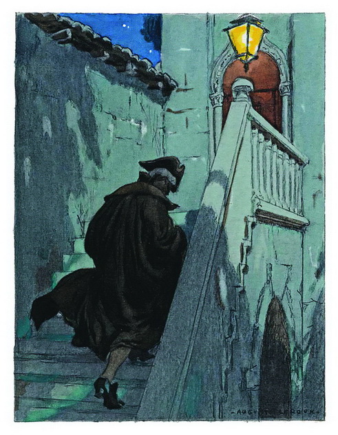 Оглядевшись вокруг, я воскликнул: «Да ведь это уже не тюрьма, и отсюда должен быть беспрепятственный выход!» В темном углу насупротив зарешеченной двери обнаружилась еще одна. Я нащупал замочную скважину, просунул внутрь мою пику и, нажав три-четыре раза, открыл дверь. Мы взошли в небольшую комнату, где на столе лежал ключ. Я вставил его в следующую дверь, но она оказалась открытой. Монах принес наши свертки, и, положив ключ на место, мы вышли на галерею, в стенах которой было много ниш, наполненных бумагами. Мы попали в архив. Я обнаружил маленькую каменную лесенку и спустился вниз. За ней была другая, а далее застекленная дверь, за которой оказался знакомый мне зал – канцелярия дожа. Я отворил окно, здесь уже не составляло никакого труда спуститься, однако в таковом случае я оказался бы среди лабиринта маленьких двориков, окружающих собор Святого Марка. Боже сохрани попасть туда! На столе лежал железный инструмент с деревянной ручкой, служивший для протыкания дырок в пергаментах, к которым шнуром привешивали свинцовые печати. С его помощью я открыл ящик стола и нашел письмо, сообщавшее проведитору[97]97