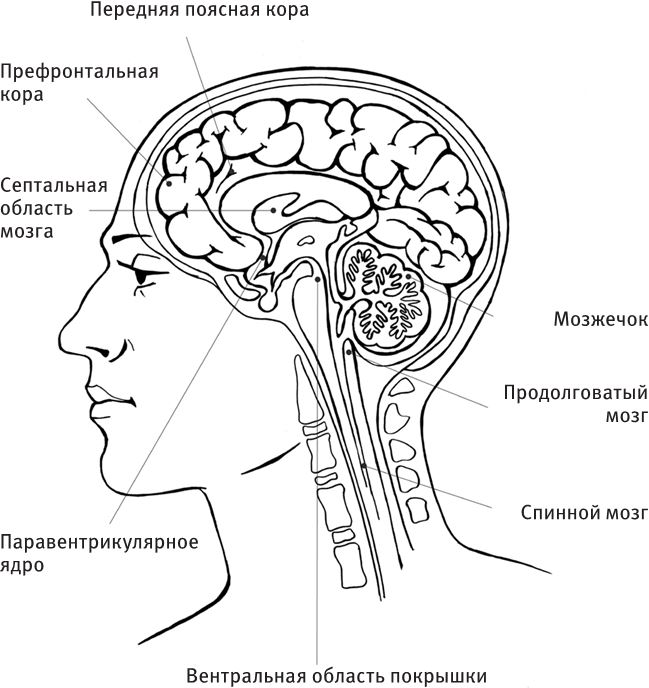 Конечно, нет ничего удивительного, что ученые попытались увидеть, как мозг выглядит во время секса. И, к их радости, большинство аппаратов для МРТ оснащено изнутри телевизионным экраном, на котором ученые могли показывать порнографические фильмы – получился своего рода высокотехнологичный стрип-бар. Когда доброволец за добровольцем забирались внутрь, чтобы насладиться шоу, ученые разбирались, какие процессы происходят у них в голове. То, что они увидели, помогает объяснить вопросы, которыми каждый из нас задавался в разной степени: почему секс так приятен? Почему во время секса мы делаем и говорим вещи, о которых потом сожалеем? Есть ли способ определить, действительно ли человек любит тебя или он обуреваем вожделением, или имитирует оргазм, а не испытывает его на самом деле? Ответы на все эти вопросы стали очевидными благодаря снимкам мозга, поскольку вы не можете скрыть это от МРТ. Чтобы повысить ваши навыки чтения чужих мыслей, давайте предпримем путешествия в самые глубины мозга, сделав несколько остановок по дороге.