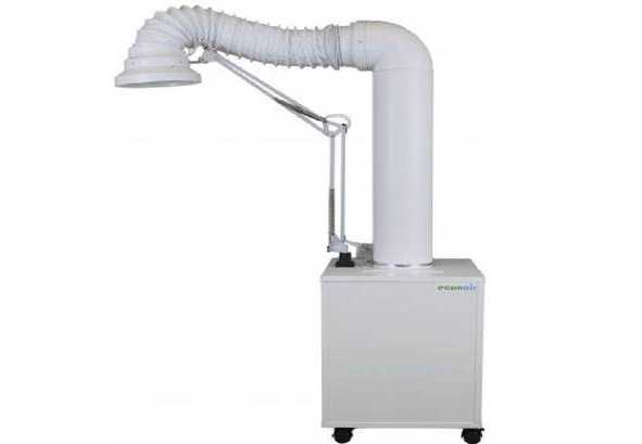 Представляет собой устройство в виде подставки для рук. Это отдельная вытяжка, которая ставится на середину стола. Она работает по принципу пылесоса и собирает пыль в многоразовый мешочек. Но минус в том, что часть пыли, которую она поглощает, выбрасывается опять в воздух.