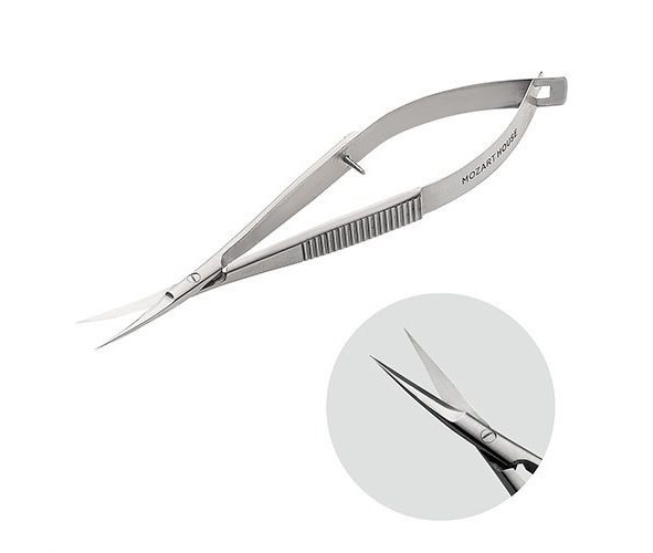 Маникюрные ножницы для кутикулы имеют длинные, тонкие, слегка изогнутые лезвия. Инструмент изготавливается из стали и затачивается вручную.