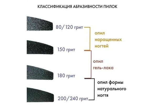 Грит – это количество крупинок на 1 квадратном сантиметре пилки. Если цифра большая, то пилочка мягкая, если цифра маленькая, то пилочка жёсткая. Таким образом диапазон от 80 до 180 подходит для искусственных ногтей, а от 180 до 300 – для натуральных ногтей