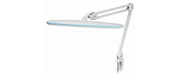 – Имеет высокое регулируемое колено, которое можно зафиксировать на любой необходимой высоте. Значительно экономит место на столе; ● Дает очень хорошее освещение во время работы.