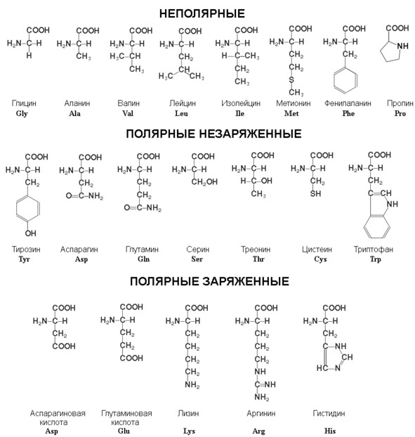 Аминокислотные остатки с гидрофобными цепями различной геометрии позволяют сформировать компактное внутреннее ядро, стабилизирующее структуру белка, организовать гидрофобные контакты с его лигандами. Глицин, лишенный бокового радикала, не заменим при сближении пептидных цепей, обеспечивает их повороты.