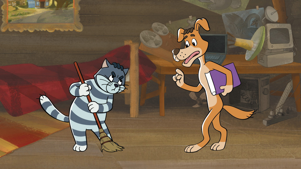 А в это самое время в Простоквашино Матроскин опять отчитывал Шарика:
