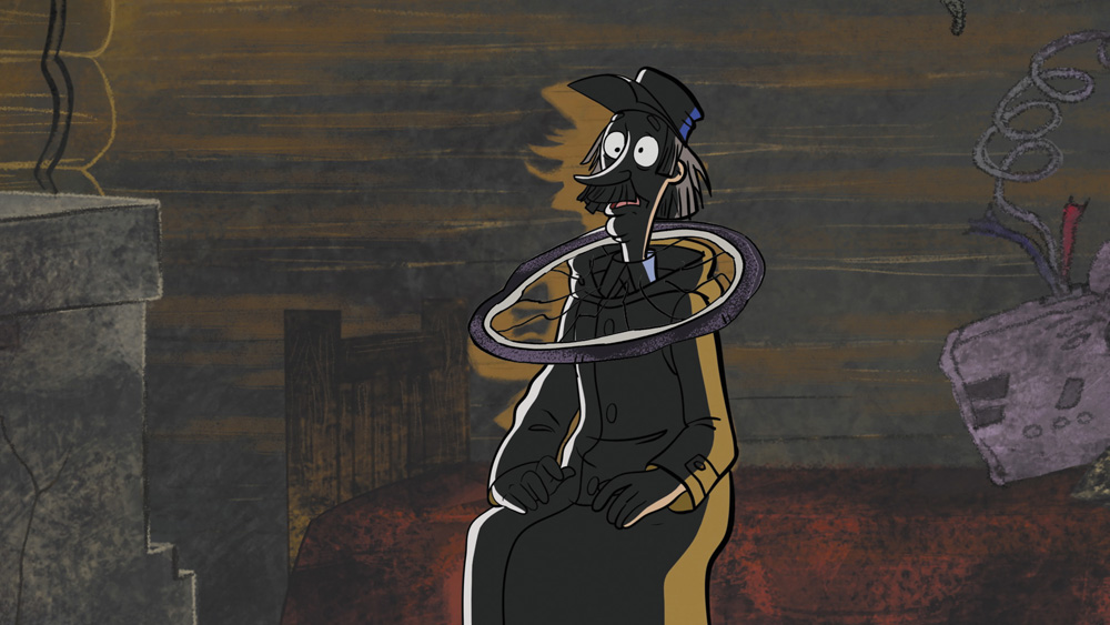 Тут за окном снова громыхнуло и молния высветила пугающий силуэт. Дверь распахнулась, и на пороге друзья увидели Печкина.