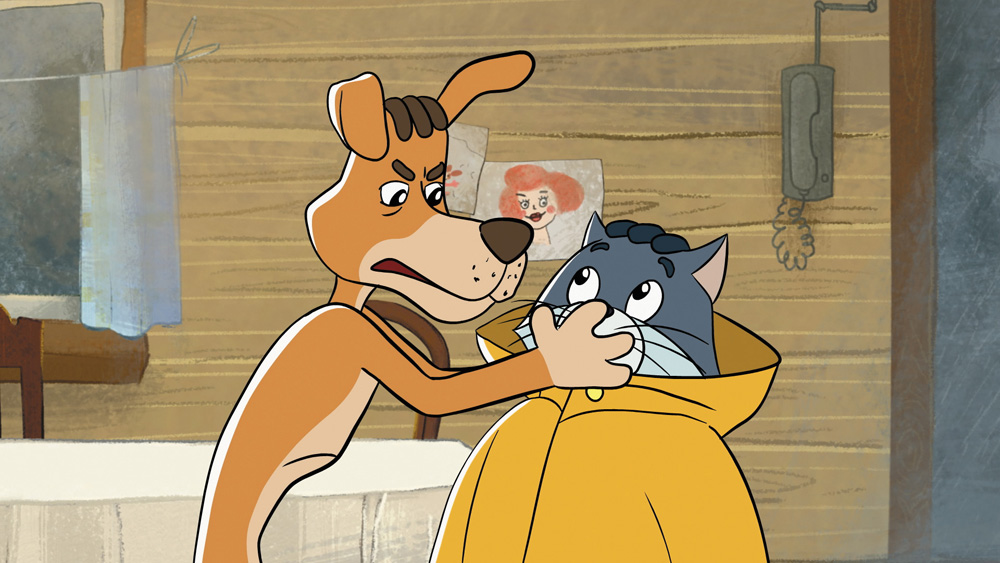 Но тут дверь отворилась, и на пороге появился Матроскин в мокром плаще.