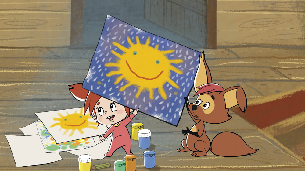 И Вера Павловна обрадовалась. Она сидела на полу в куче своих рисунков. В одной руке у неё была кисточка, с которой на пол капала жёлтая краска. А в другой – новый шедевр. Весёлая каляка-маляка. Тама-Тама подрисовала лучики, и получилось солнышко.