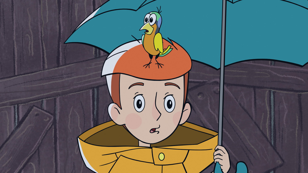 Он взял зонтик, обул сапоги и пошёл в коровник.