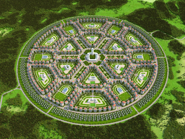 Даже неискушенный наблюдатель подтвердит, что в основе пространственной организации идеального города он видит многолучевую звезду или иной правильный многоугольник. Центр города связан с его периферией короткими радиальными транспортными связями (улицами), а квартальная структура образована концентрическими многоугольниками. Размеры кварталов растут по мере удаления от центра города, и с удалением изменяется их функционалистика. Внутриквартальная организация пространств может быть прямоугольной, что также отвечает требованиям к рациональной организации внутриквартальной застройки.