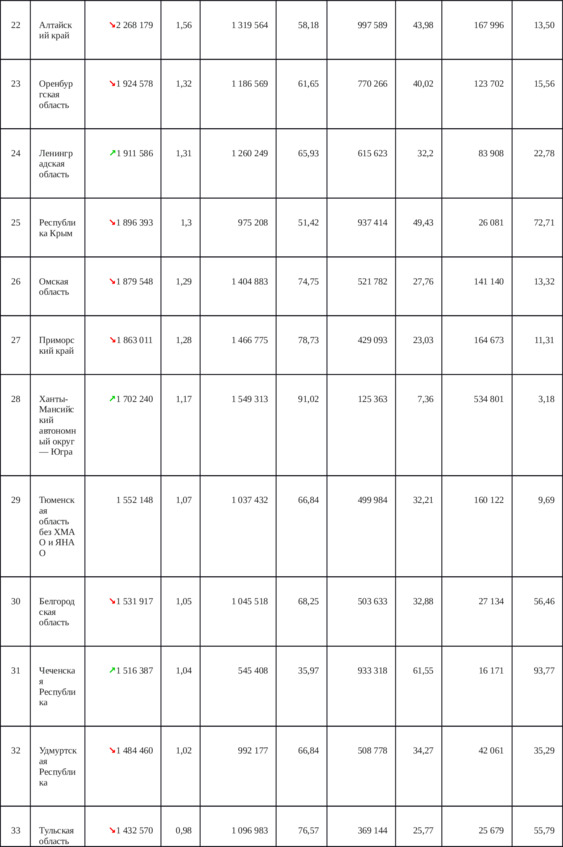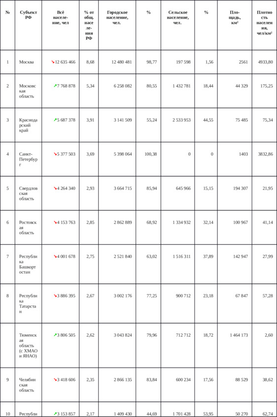 Приложение 1. Таблица 6. распределение численности всего (в том числе городского и сельского) населения и его плотности по регионам России