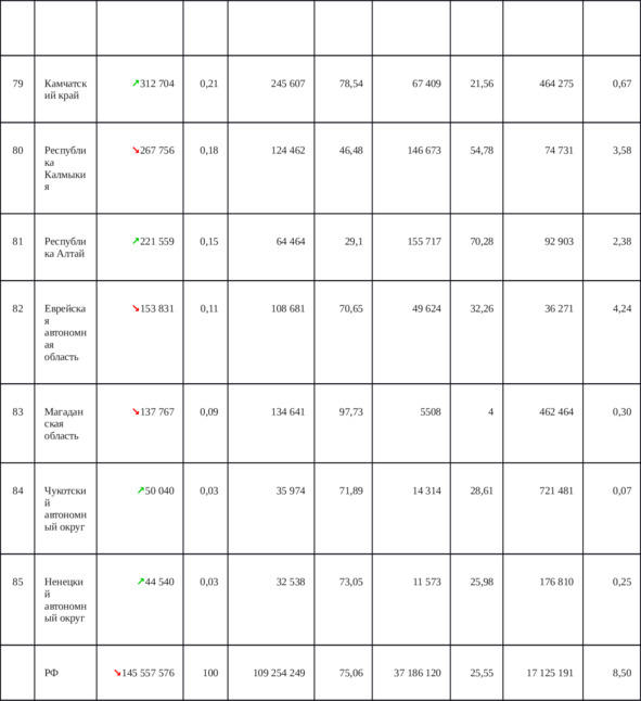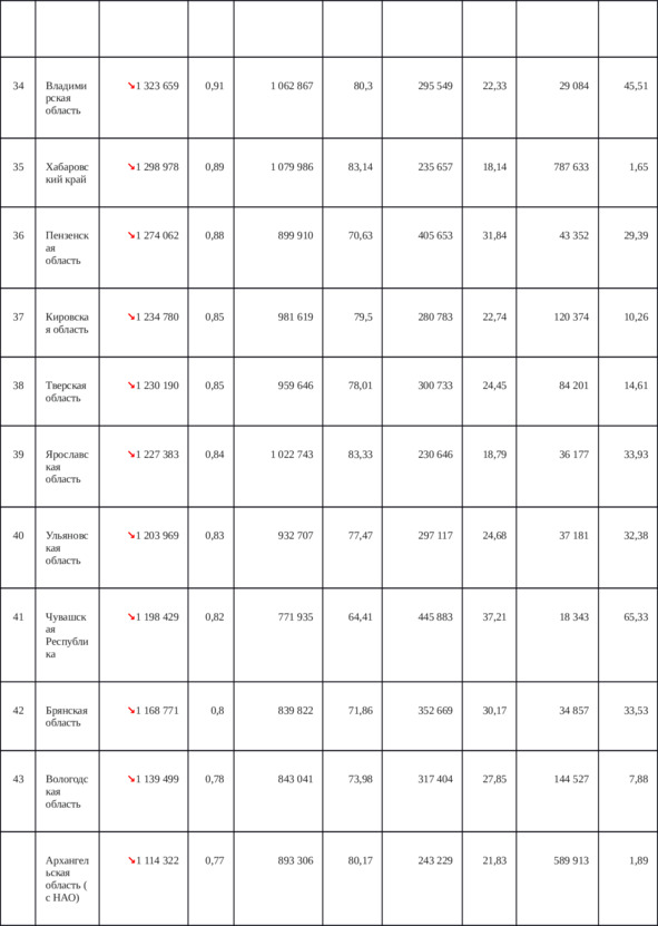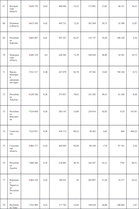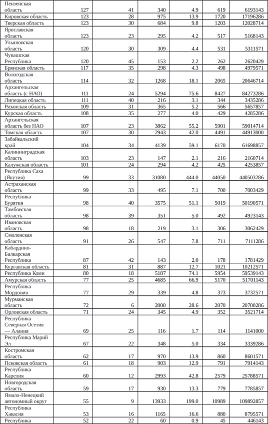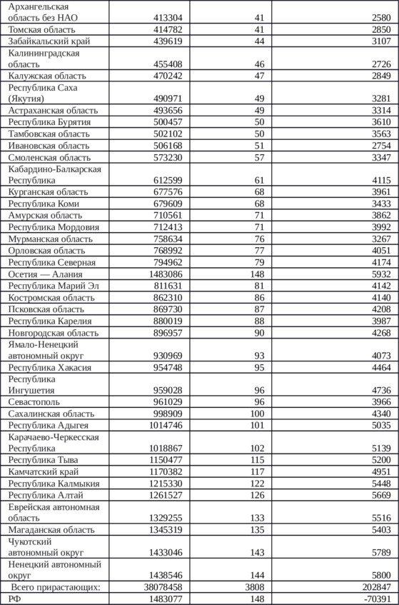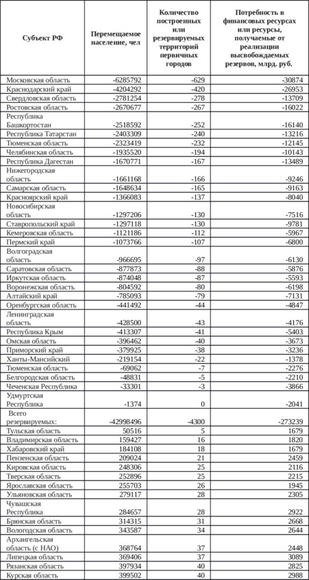 Приложение 3. Таблица 9. Распределение населения по регионам России для достижения гипотетической ситуации равнонаселенности