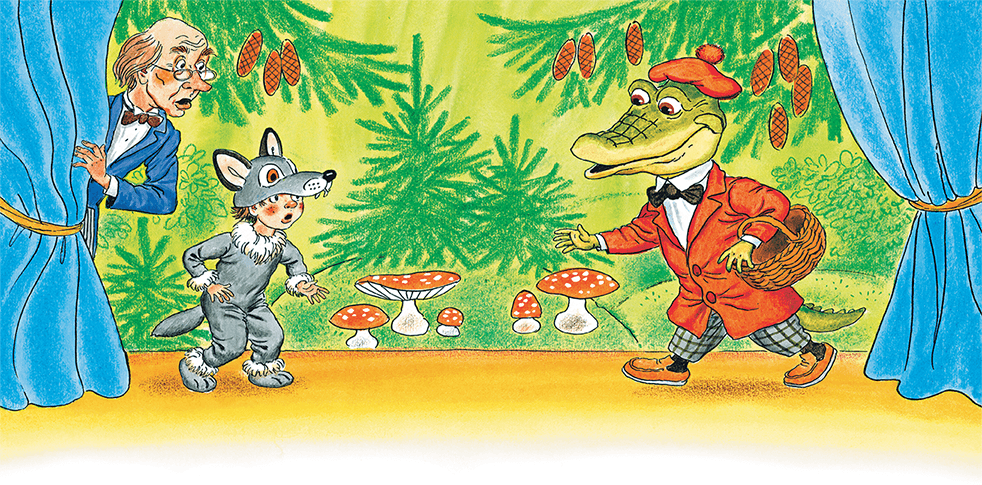 Серый волк в страхе убежал. Дети были в восторге. Они никогда не видели такой интересной «Красной Шапочки». Они долго хлопали и просили повторить всё сначала. Но крокодил почему-то отказался. И почему-то долго уговаривал Чебурашку не рассказывать Гале, как прошёл спектакль.